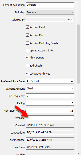 ●Birthday : Use the Birthday dropdown to track Birth Months of consignors for promotion purposes.
