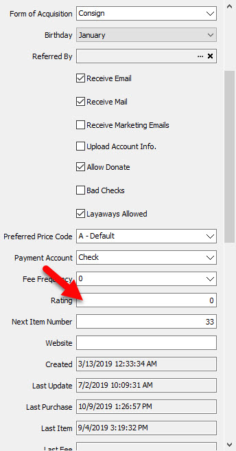 ●Rating : Rating is a way to rate customers based on various reason. The rating system then can be used to further define reports based on customer accounts.