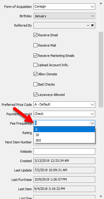 ●Fee Frequency : Use Fee Frequency as a tag to make the account associated with the type of desired frequency. Select the dropdown to change the Fee Frequency. See Fee Frequencies for more details.