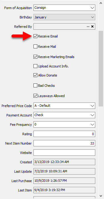 ●Receive Email (Check Box) : Check this box if the customer has indicated they wish to be contacted by email.