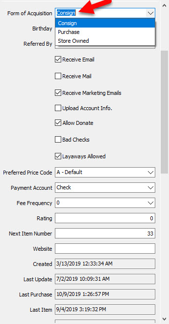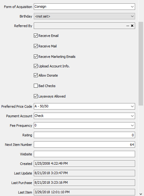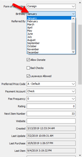 ●Birthday : Use the Birthday dropdown to track Birth Months of consignors for promotion purposes.