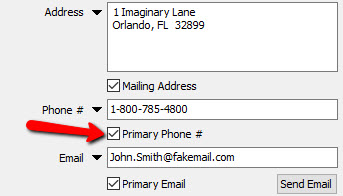 ●Primary phone Number (Check Box) : Select this check box for the current number to make it the Primary Phone Number.